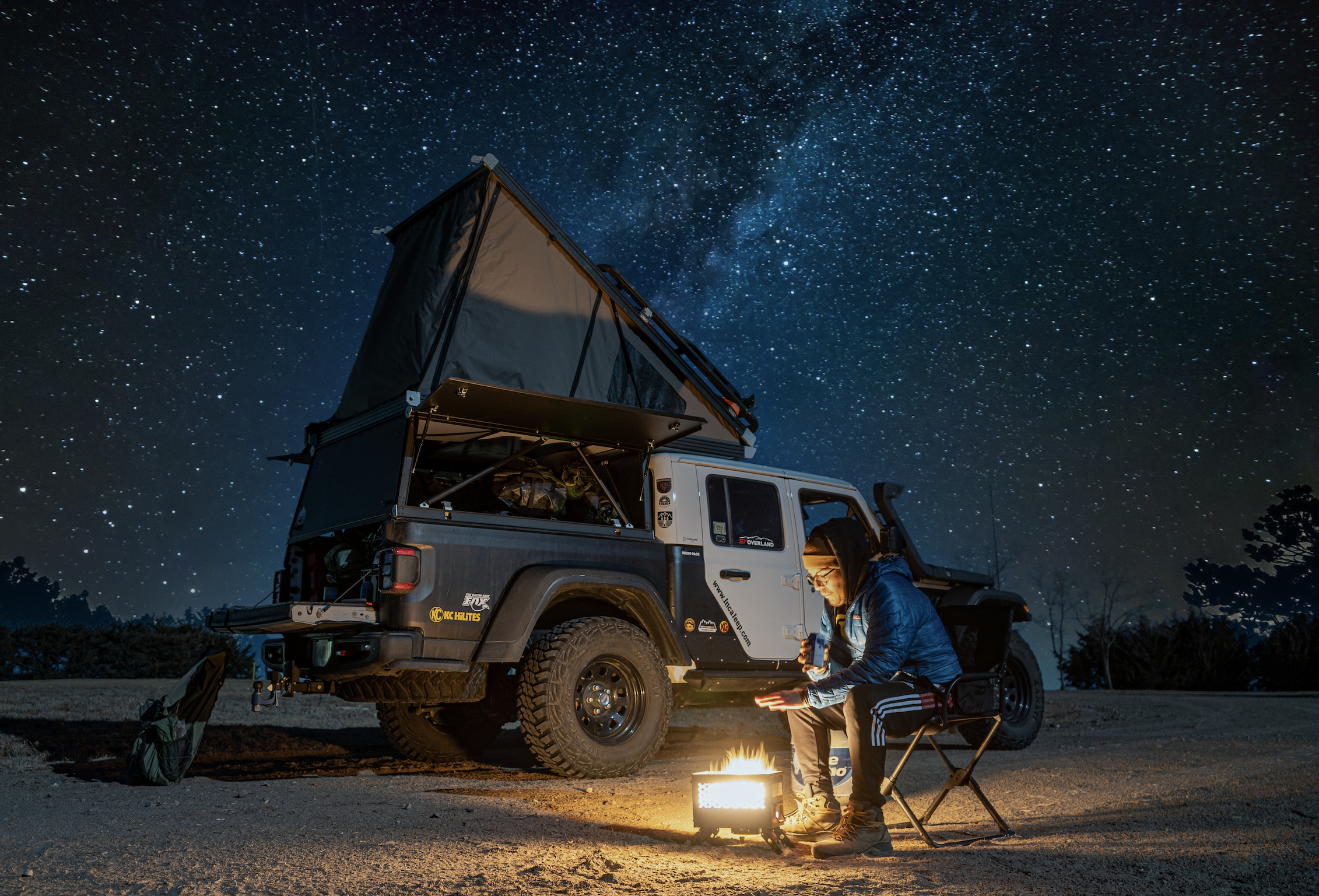 Our low profile camper gives you benefit of accessing the inside of your sleeping area from your Jeep. This keeps you ride and MPG close to factory.